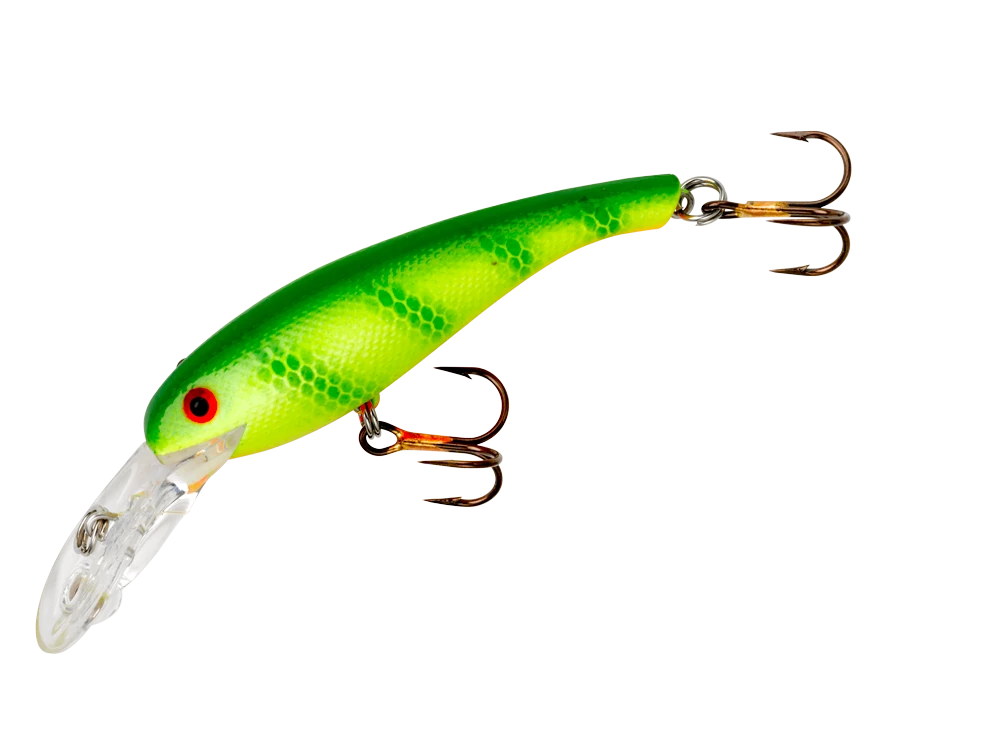 The Cotton Cordell Wally Diver is one of the legendary walleye lures of all time. The proven slender profile and tight wiggle make it a go-to for walleye anglers everywhere. Two sizes are available, the 2 ½-inch CD5 and the 3 1/8-inch CD6. The CD5 dives to 8 feet on the cast and 11 when trolled, while the larger CD6 dives to 11 feet on the cast and 18 when trolled. The Wally Diver is available in a multitude of color patterns designed to catch boatloads of trophy walleyes.