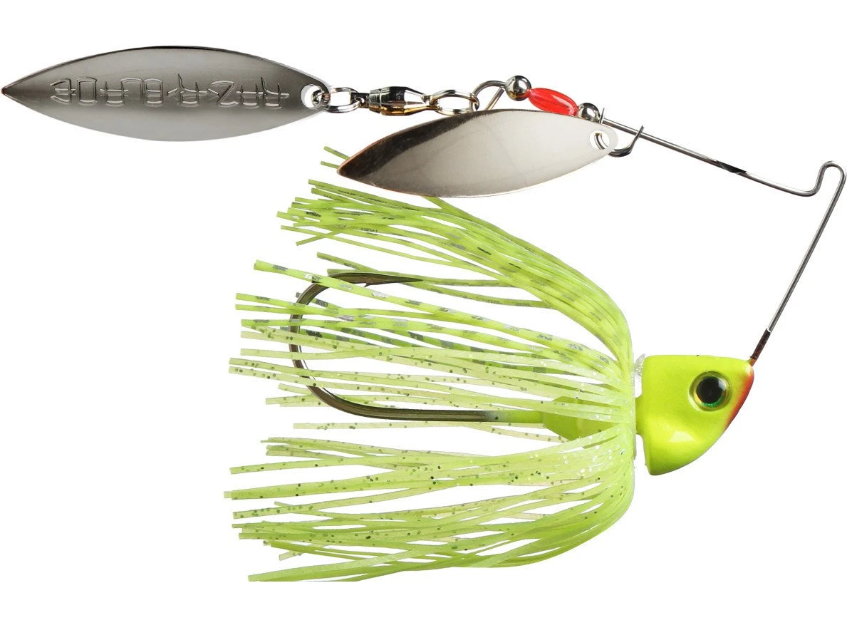 Strike Baby Burner Spinnerbait is a premium, down-sized spinnerbait weighing only 1/4-ounce.Ā Built for speed, itās equipped with smaller versions of the Strike King RAZ-R-BLADE high RPM blades.Ā These thin cut willow blades are designed to spin fast and cause less drag than traditional willow blades, and they also help keep the bait from rising to the surface while increasing flash.Ā The shape of the Baby Burnerās head also features extra weight on the hook shank to reduce drag and keep the bait running true, while a super sharp Gamakatsu hook seals the deal.Ā Ā