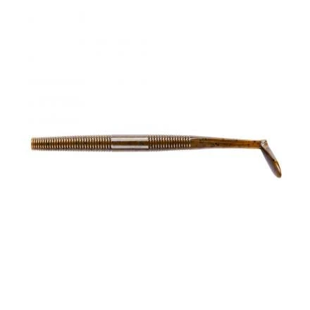 The Swim’n Dinger is a heavily salted, slow-sinking bait with a swimming-action paddle tail that swims with an exaggerated side-to-side action. The design of the Swim’n Dinger allows this bait to swim during the retrieve and while it’s slowly sinking on a weighted Texas rig. Two sizes and 10 pro-selected color patterns are available.